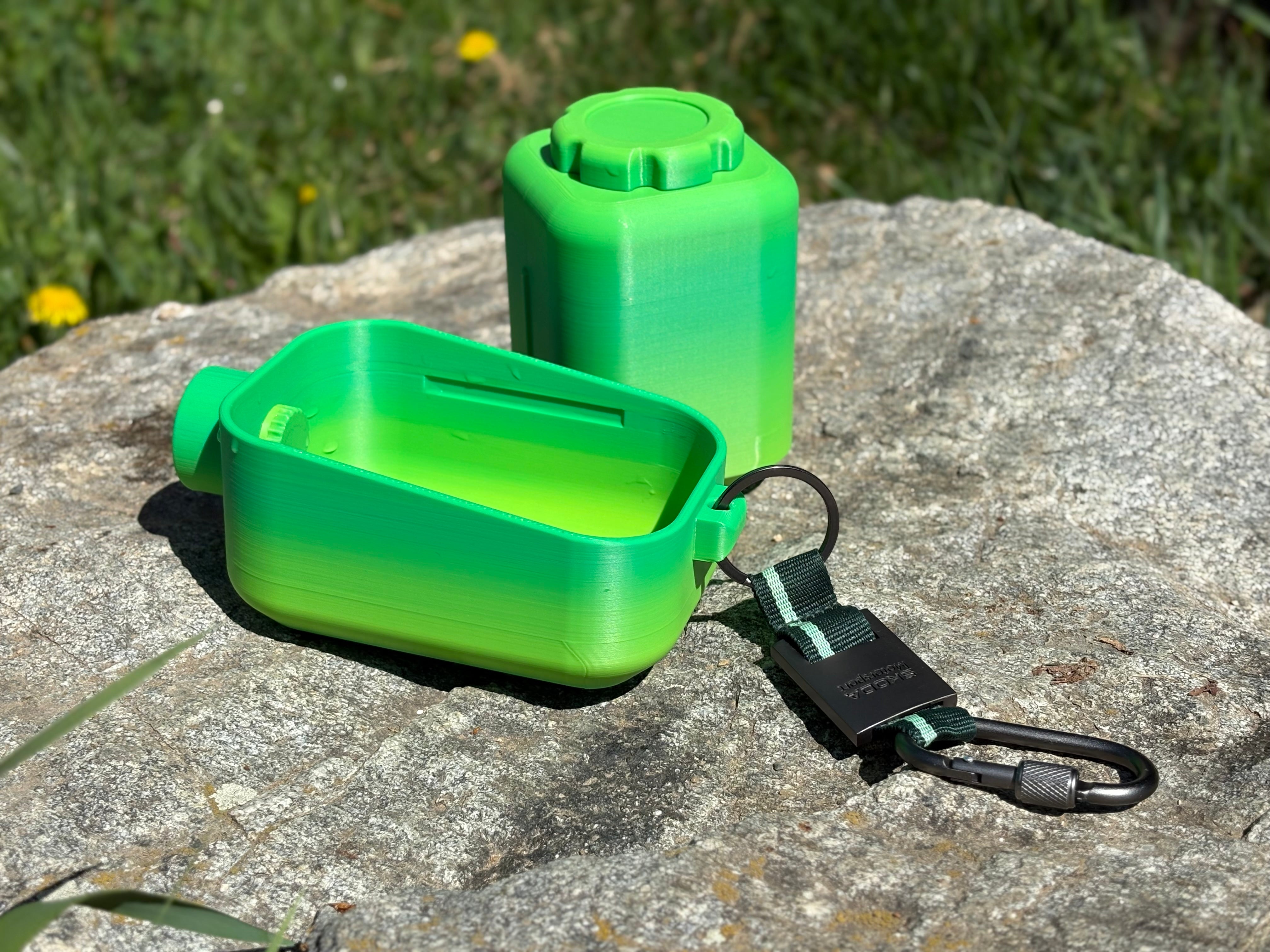 Dviguba Funkcija: Integruoti du atskiri skyriai leidžia patiekti ir vandens, ir maisto ar skanėstų vienu metu, nešiojant tik vieną priedą. Tai taupo vietą ir supaprastina iškylas ar žygius.