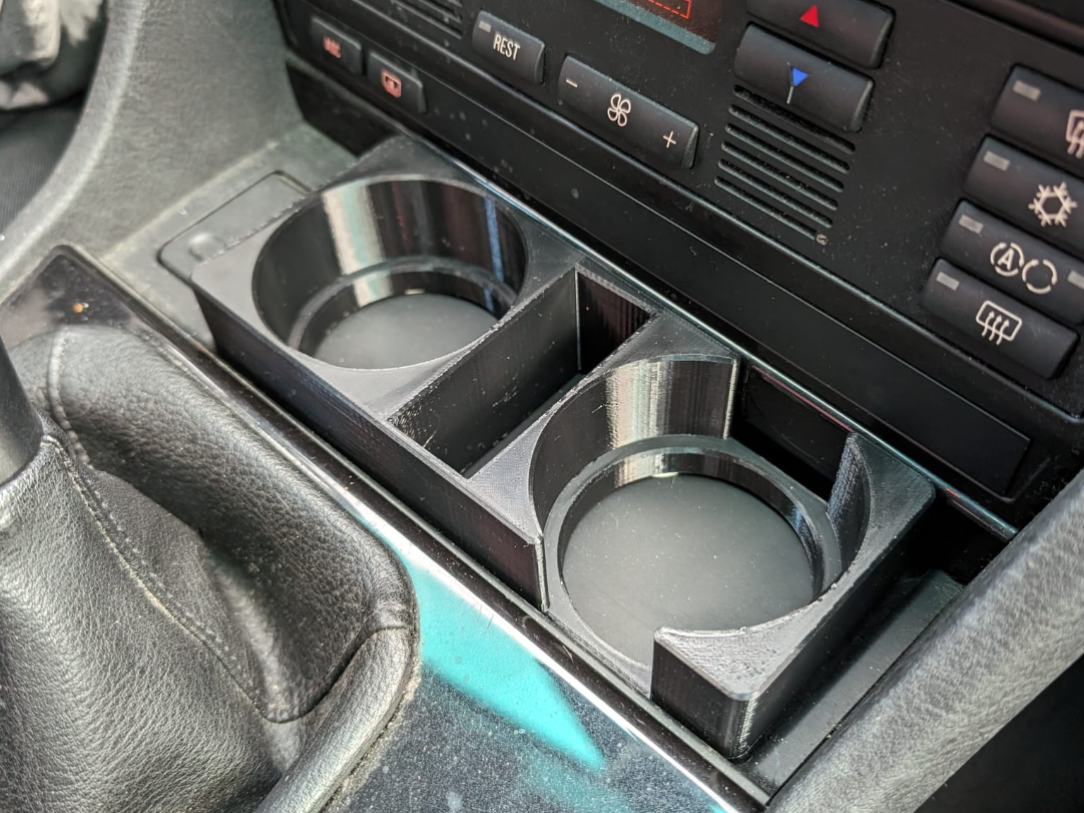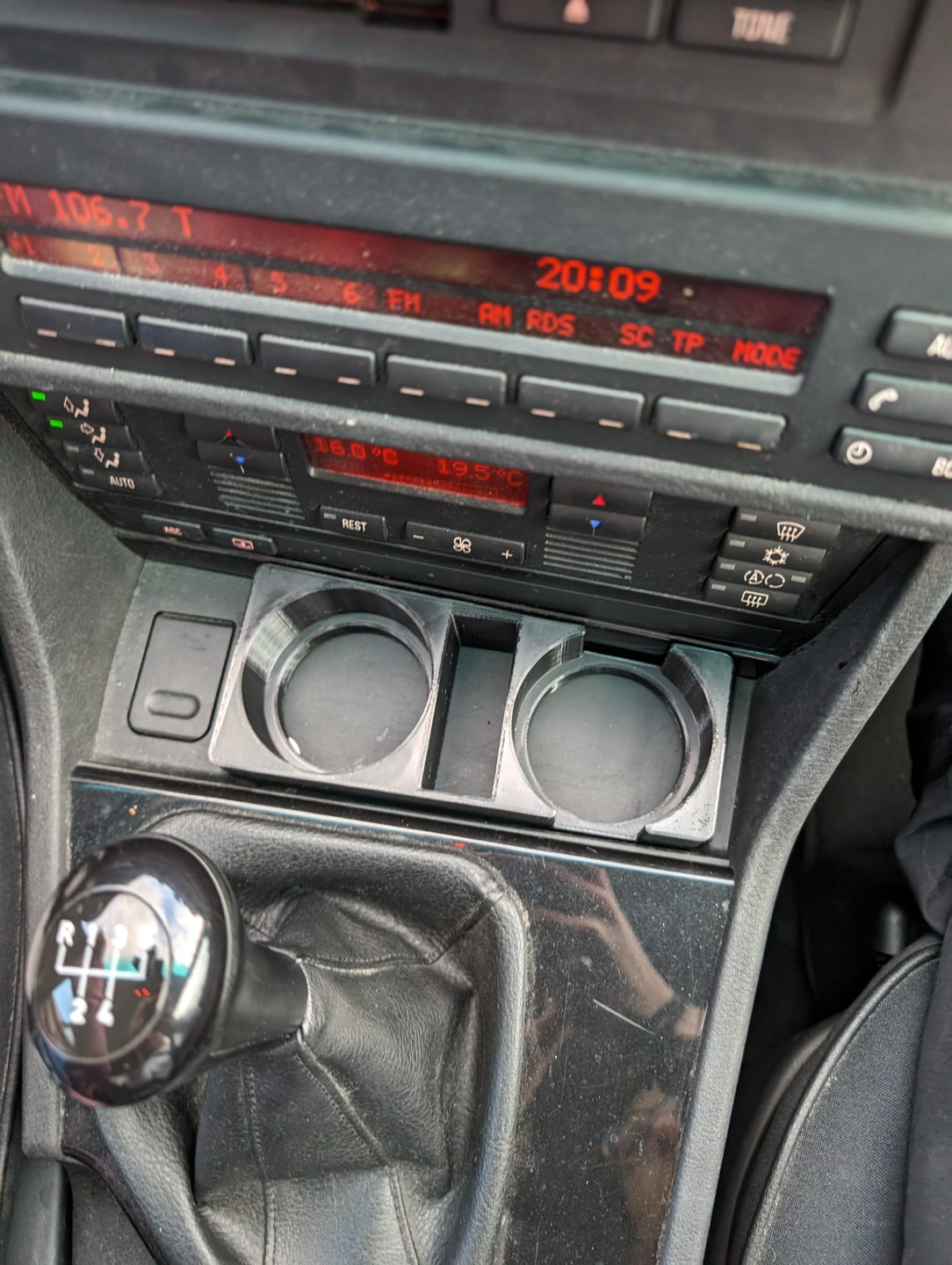 Tai originaliai sukurta puodelių laikiklio versija BMW E39 modeliui, kuri yra erdvi ir talpi – specialiai pritaikyta taip, kad net “bubble tea” tipo gėrimai portrait, galėtų tilpti be problemų. Dizainas sukurtas iš esmės – be per laiką žinomų variantų, pritaikant maksimalų dydį.