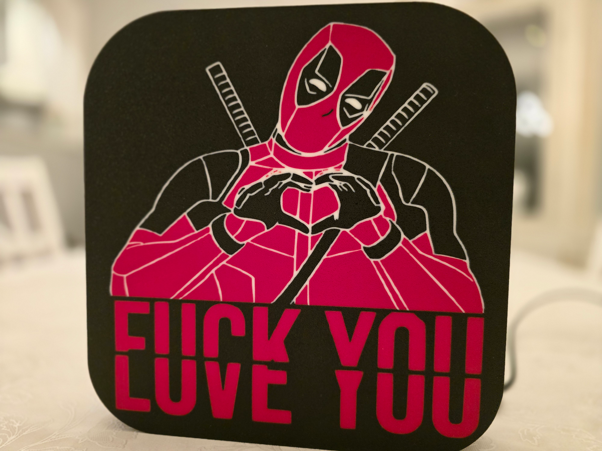 „Deadpool’s Valentine“ – Šviečianti Meilės Dekoracija (Lightbox)