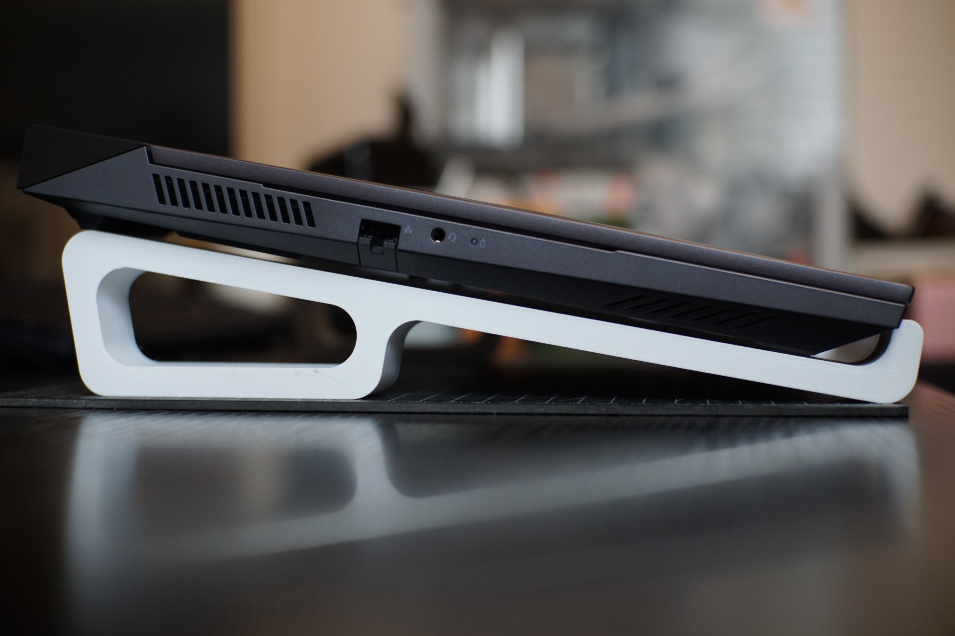 Optimizuotas Vėsinimas: Išskirtinai suprojektuoti šoniniai ventiliacijos kanalai efektyviai nukreipia karštą orą nuo įrenginio. Tai padeda užtikrinti maksimalų nešiojamojo kompiuterio našumą ir prailgina baterijos bei vidinių komponentų tarnavimo laiką.