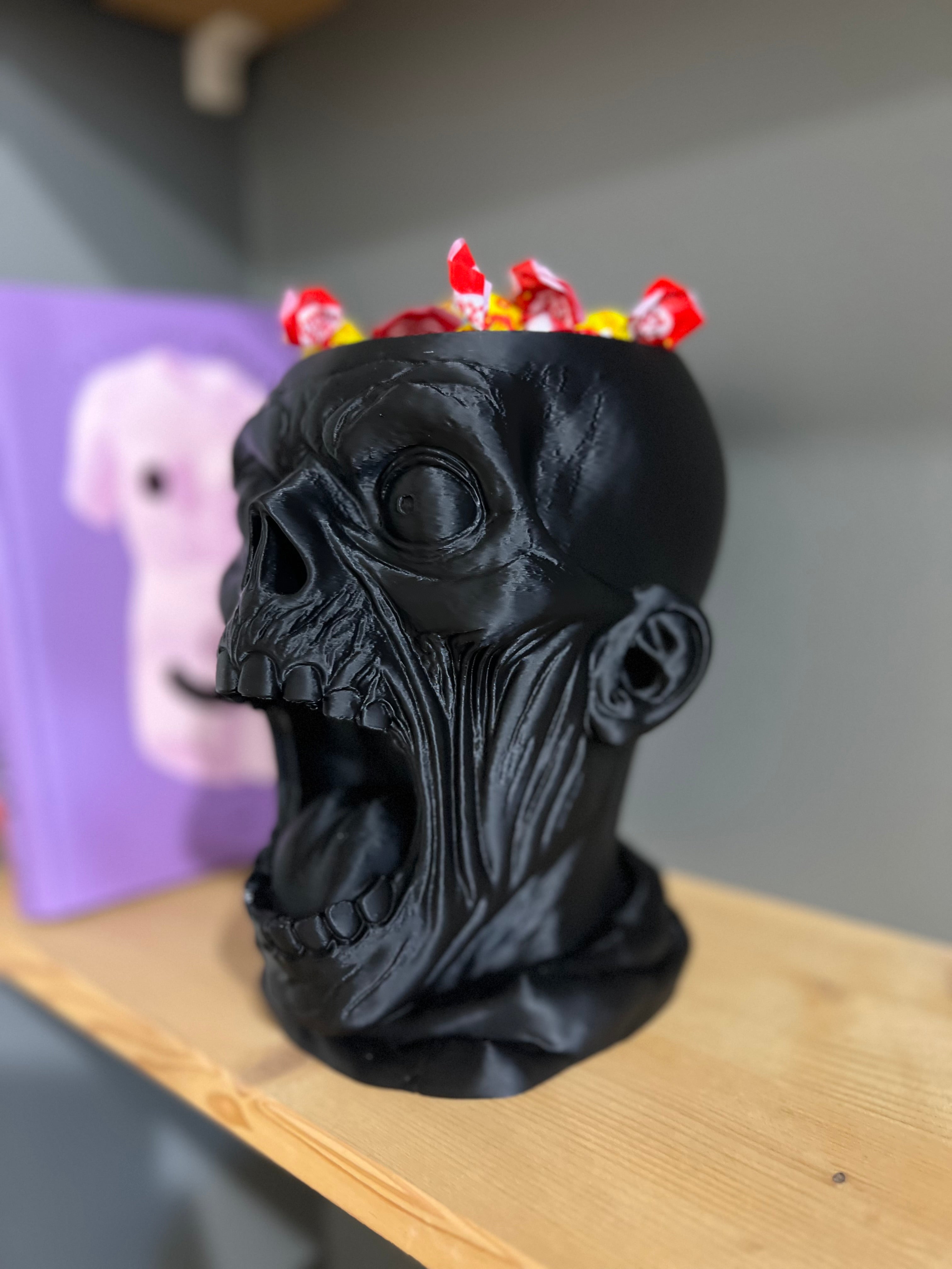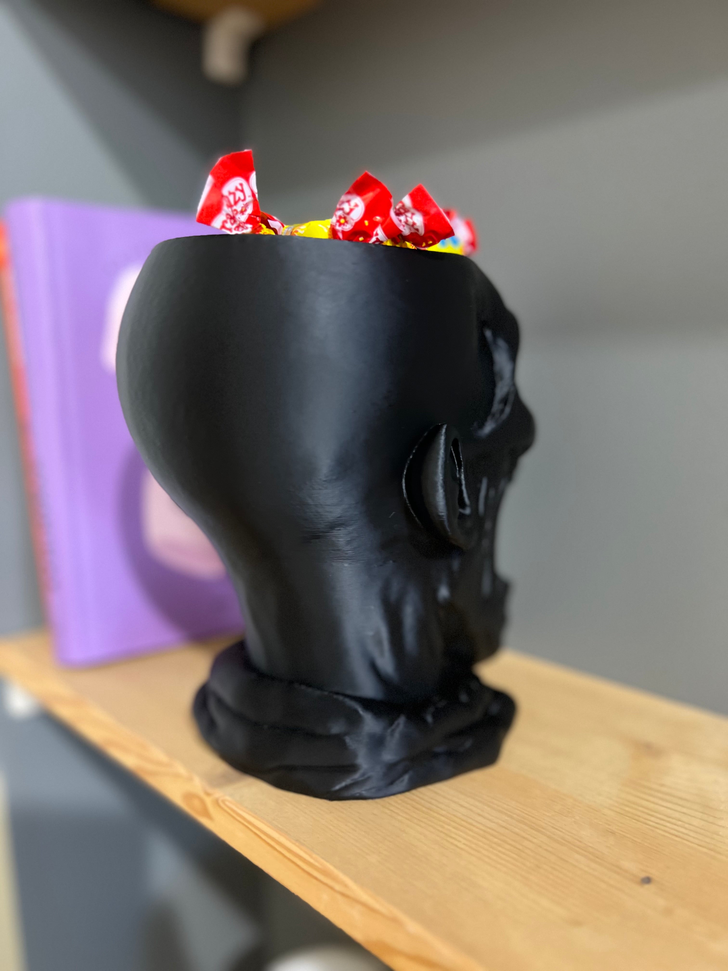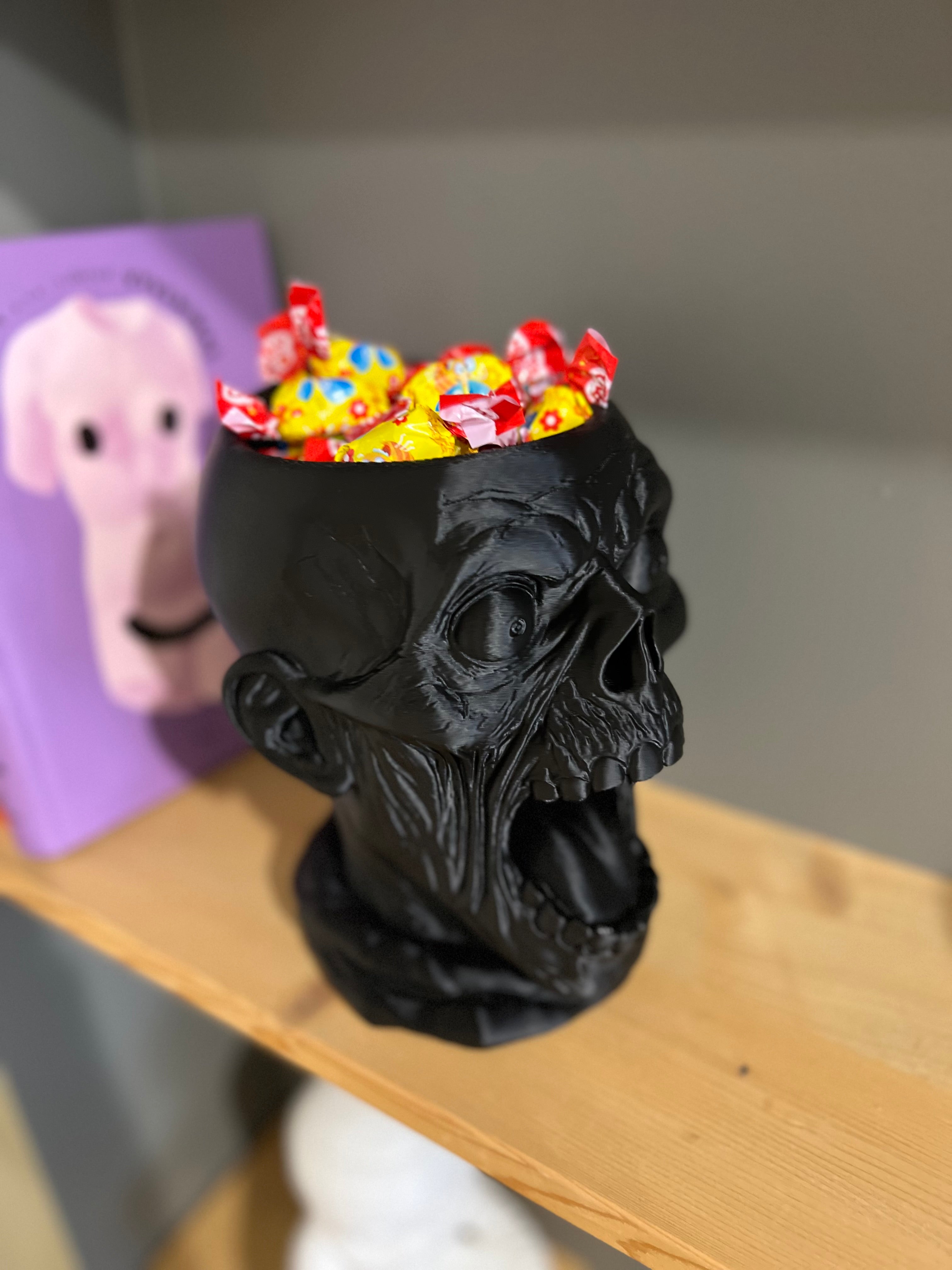 Išraiškingas, didelis ir akį traukiantis saldainių dubuo, sukurtas tikram Helovyno įspūdžiui. Giliai išdrožtų detalių kaukolė su atvira burna taps pagrindine vakarėlio dekoracija ir praktiška vieta skanėstams.