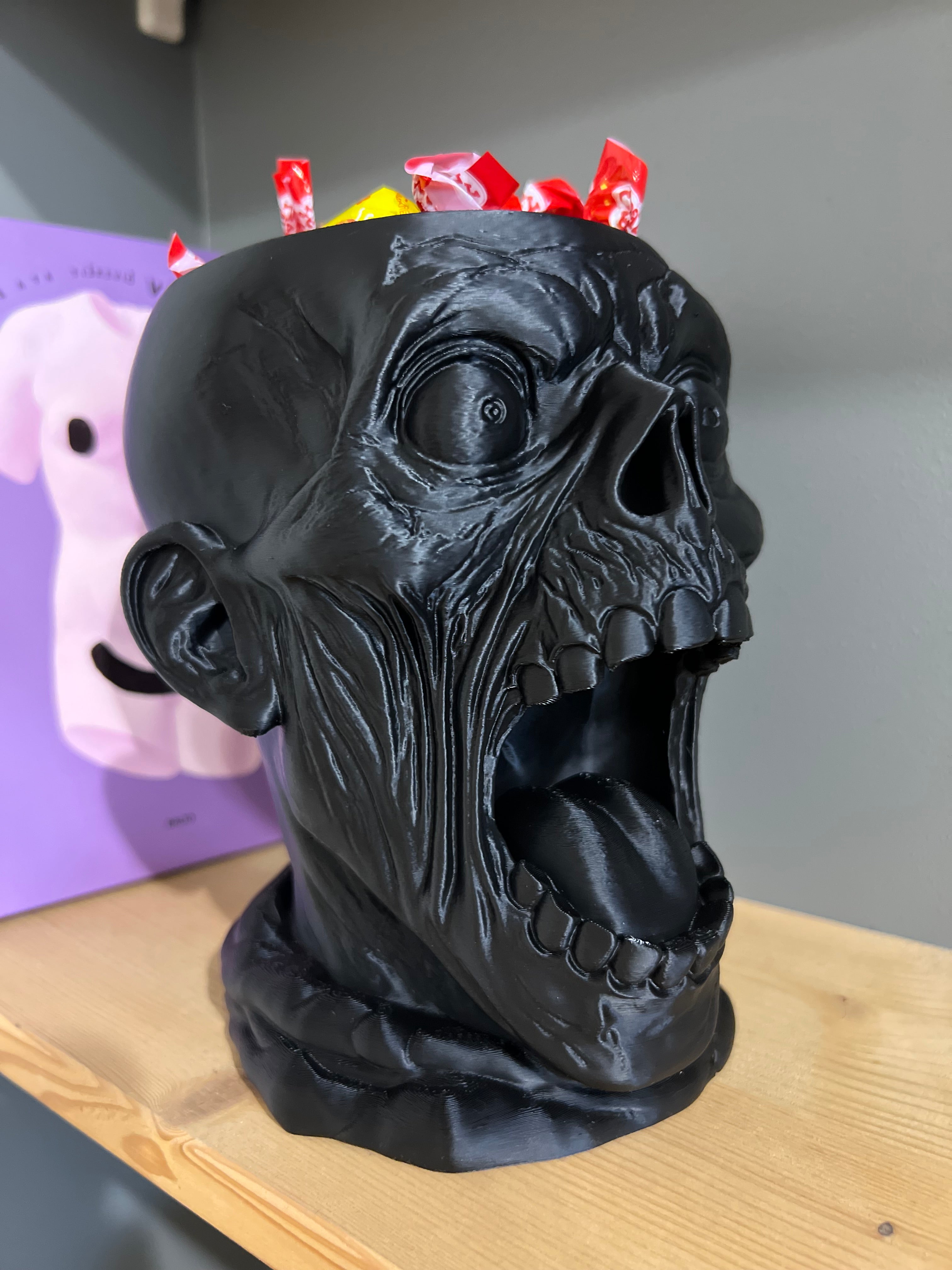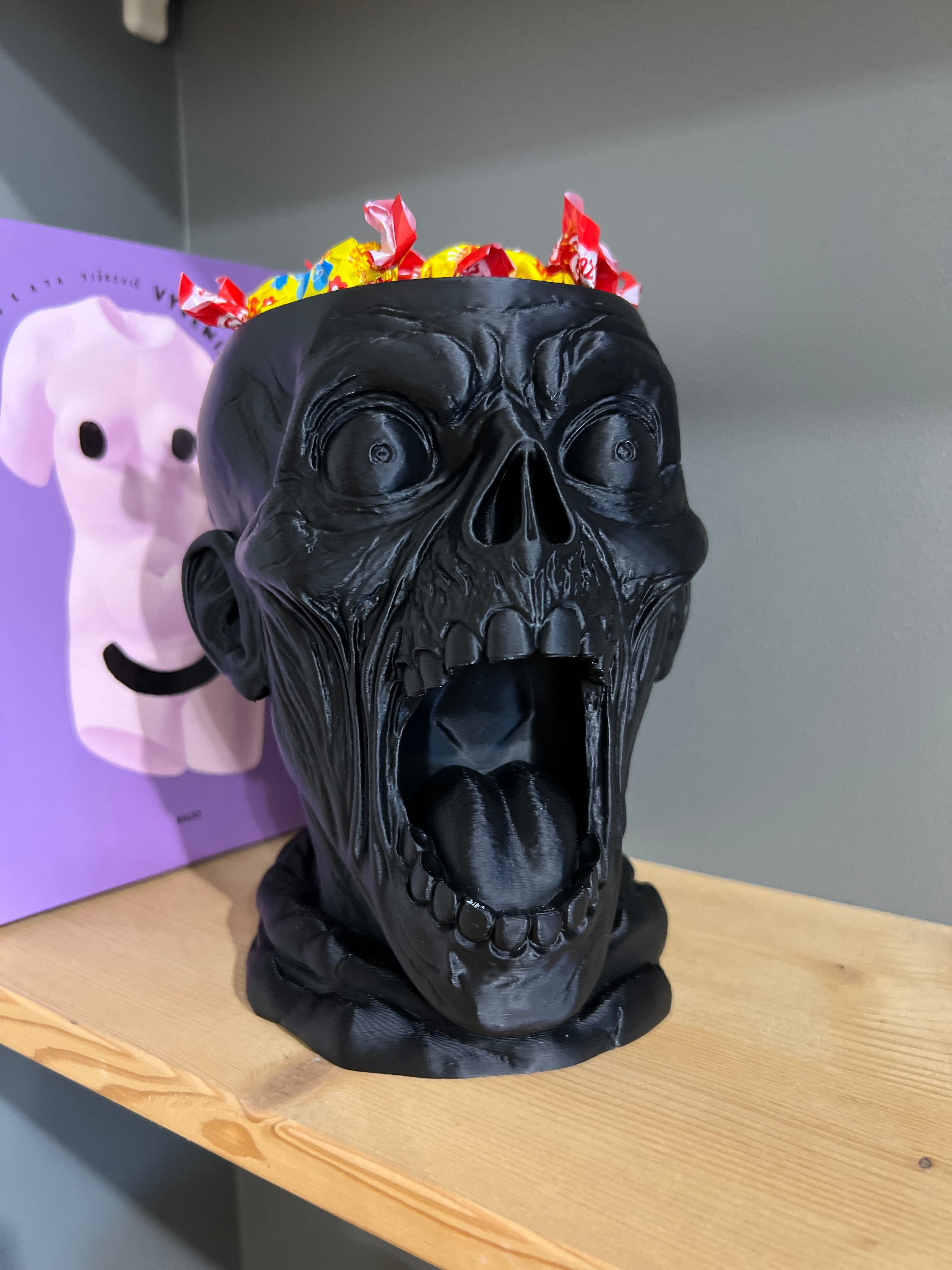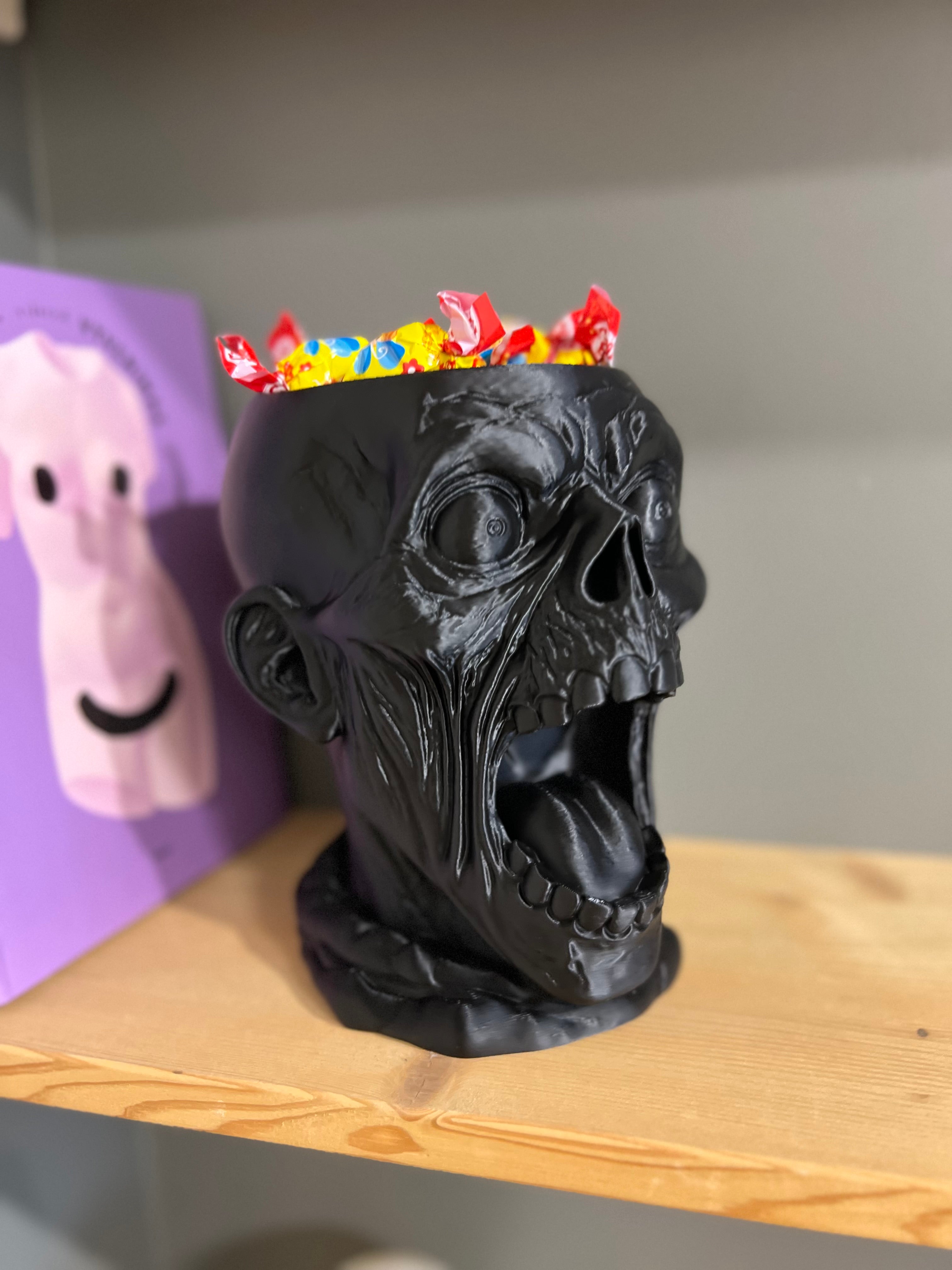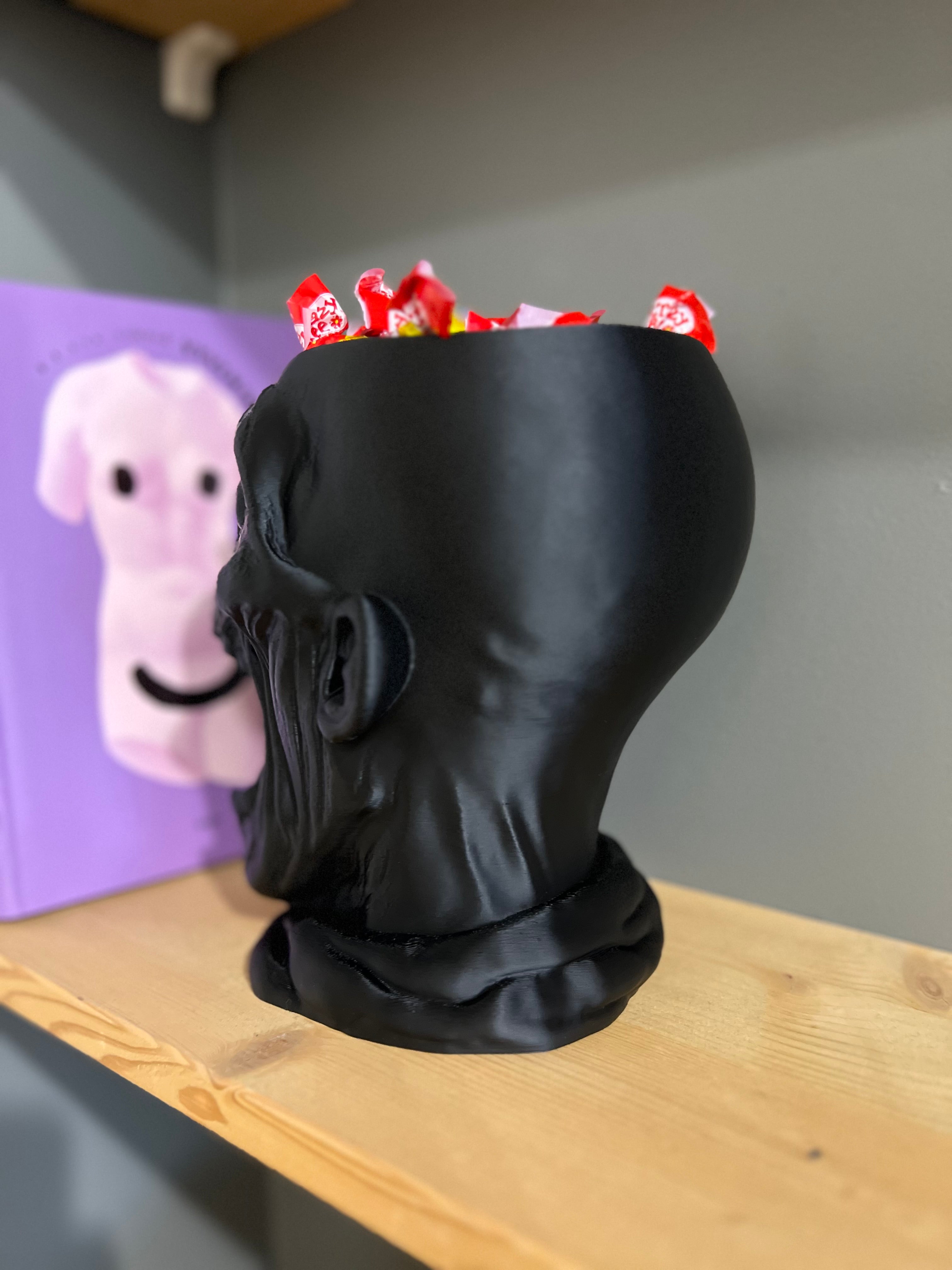 Išraiškingas, didelis ir akį traukiantis saldainių dubuo, sukurtas tikram Helovyno įspūdžiui. Giliai išdrožtų detalių kaukolė su atvira burna taps pagrindine vakarėlio dekoracija ir praktiška vieta skanėstams.