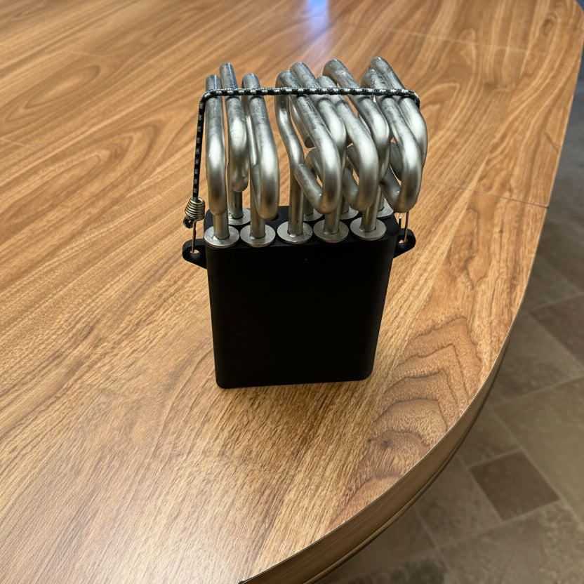 Palapinės varžtų laikiklis – praktiškas aksesuaras, skirtas patogiai laikyti žvejybinės palapinės sraigtus (smegtus). Ši dėklas užtikrina tvarką ir saugumą – galite rinktis iš dviejų variantų: 6 arba 10 vietų.