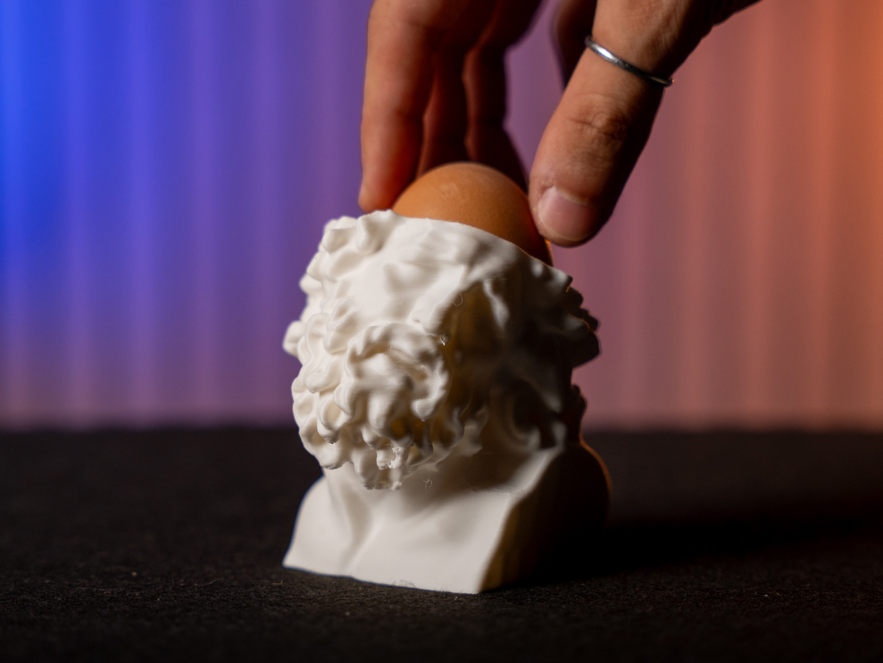 Meninis Funkcionalumas: Nors tai vizualiai įspūdingas meno kūrinys, jis puikiai tarnauja kaip elegantiškas ir stabilus kiaušinių laikiklis.