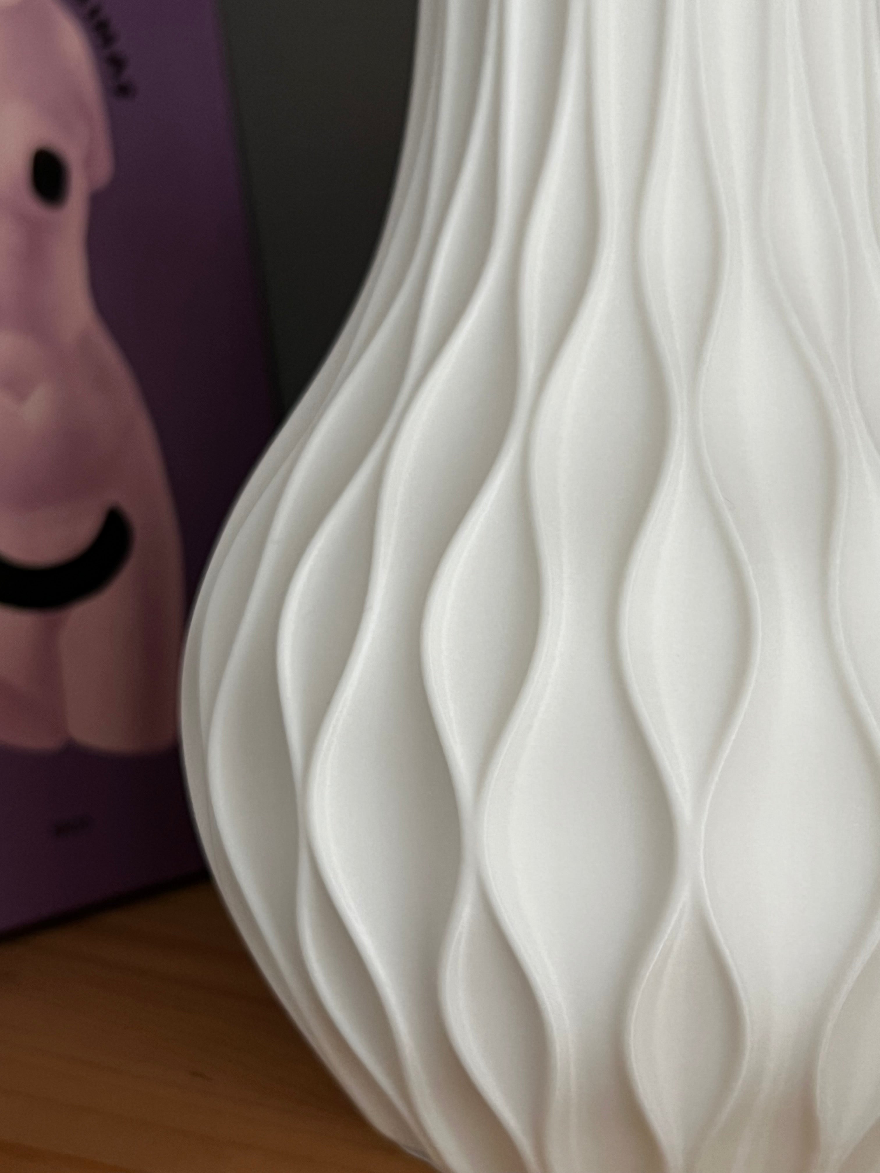 Papuoškite savo namus šiuolaikišku ir elegantišku akcentu su šia unikalią balta vaza. Jos subtilus bangų formos dizainas suteikia šiltą ir modernų išvaizdą, pridedant rafinuotumo bet kuriai erdvei. Vaza turi apie 19 cm aukštį ir sveria apie 250 g, todėl ji yra kompaktiška, bet tvirta, puikiai tinka tiek kaip gėlių kompozicijų pagrindas, tiek kaip savarankiškas dekoratyvinis elementas.