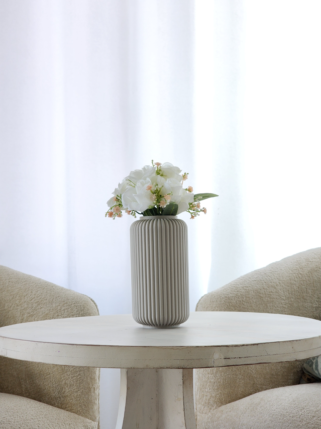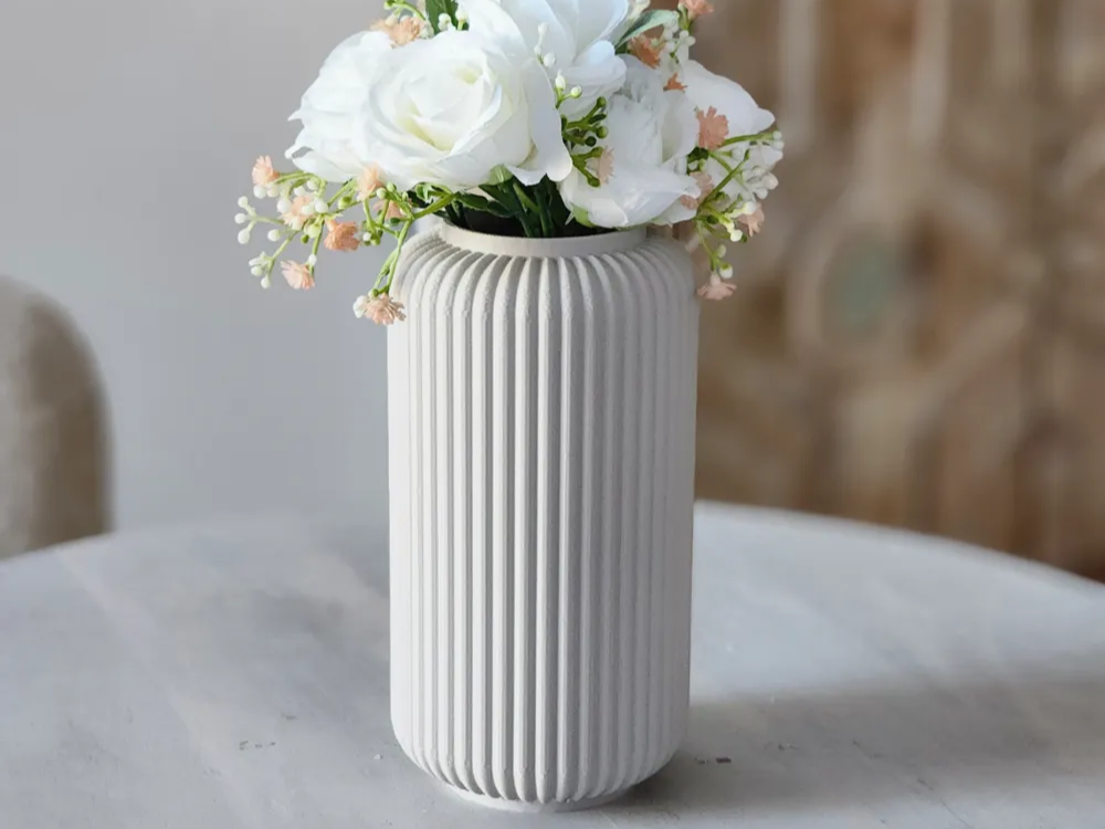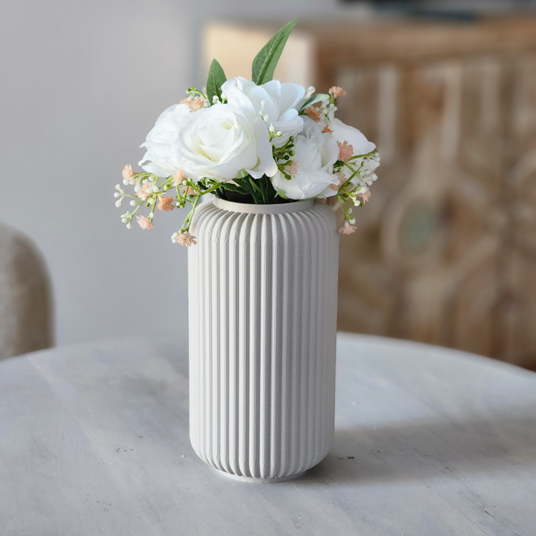 Ši moderni „Fluted Vase“ vaza išsiskiria elegantišku dizainu ir aiškiomis vertikaliomis linijomis. Jos 17 cm aukštis ir 8 cm plotis suteikia stabilumą, o minimalistinis stilius leidžia lengvai priderinti ją prie įvairių interjero sprendimų. Puikiai tinka tiek šviežiems, tiek džiovintiems žiedams, taip pat kaip stilingas dekoro akcentas ar dovana artimiesiems.