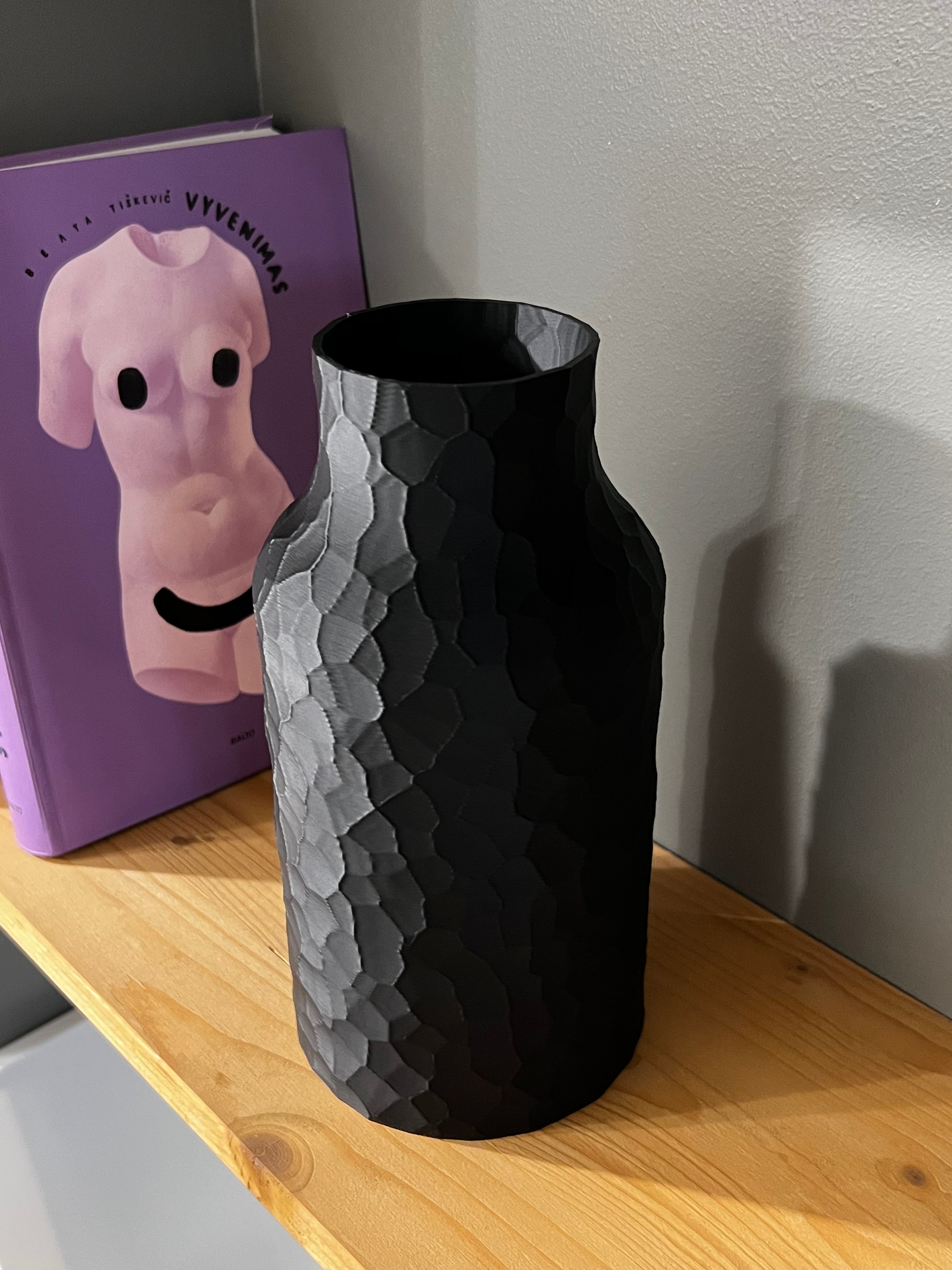 Papuoškite savo namus šiuolaikiška ir stilinga juoda vaza, kurios unikalus tekstūruotas dizainas pritrauks dėmesį ir suteiks jūsų interjerui išskirtinumo. Ši rankų darbo vaza yra puikus pasirinkimas norint pridėti modernumo ir elegancijos bet kuriai erdvei. Jos aukštis – apie 21 cm, o svoris – 200 g, todėl ji yra tvirta, tačiau kompaktiška, puikiai tinkanti tiek kaip gėlių kompozicijų pagrindas, tiek kaip savarankiškas dekoratyvinis elementas.