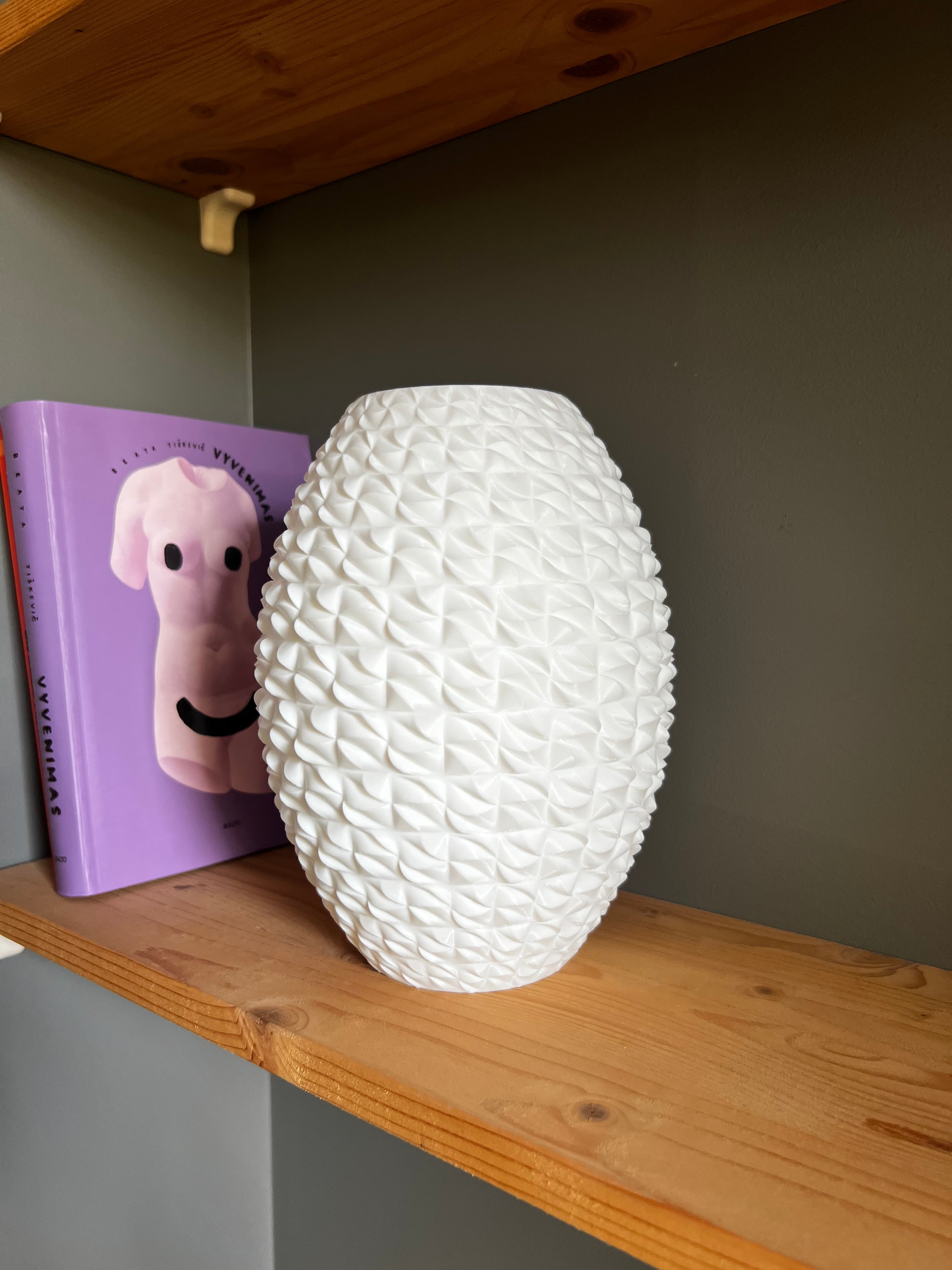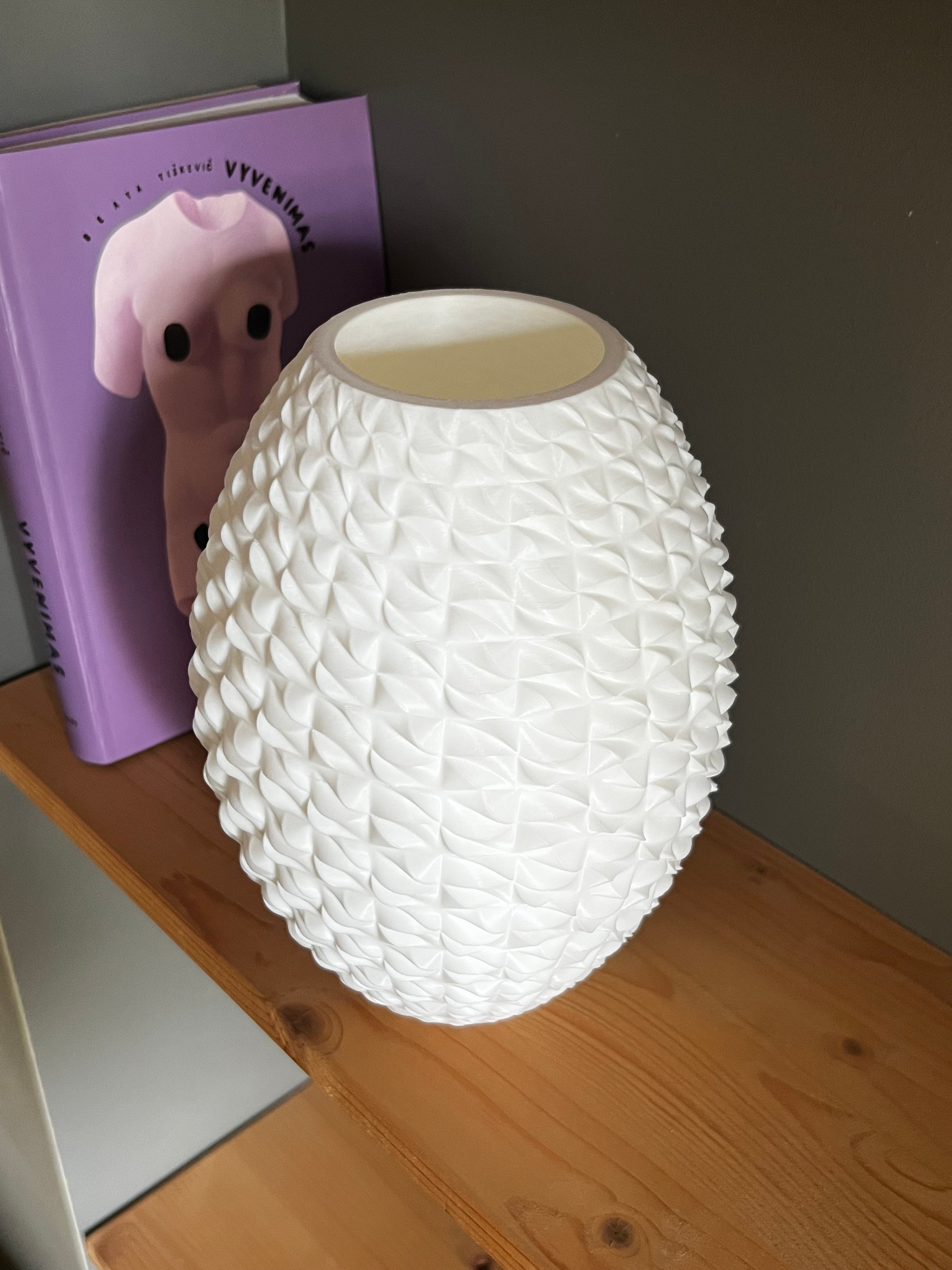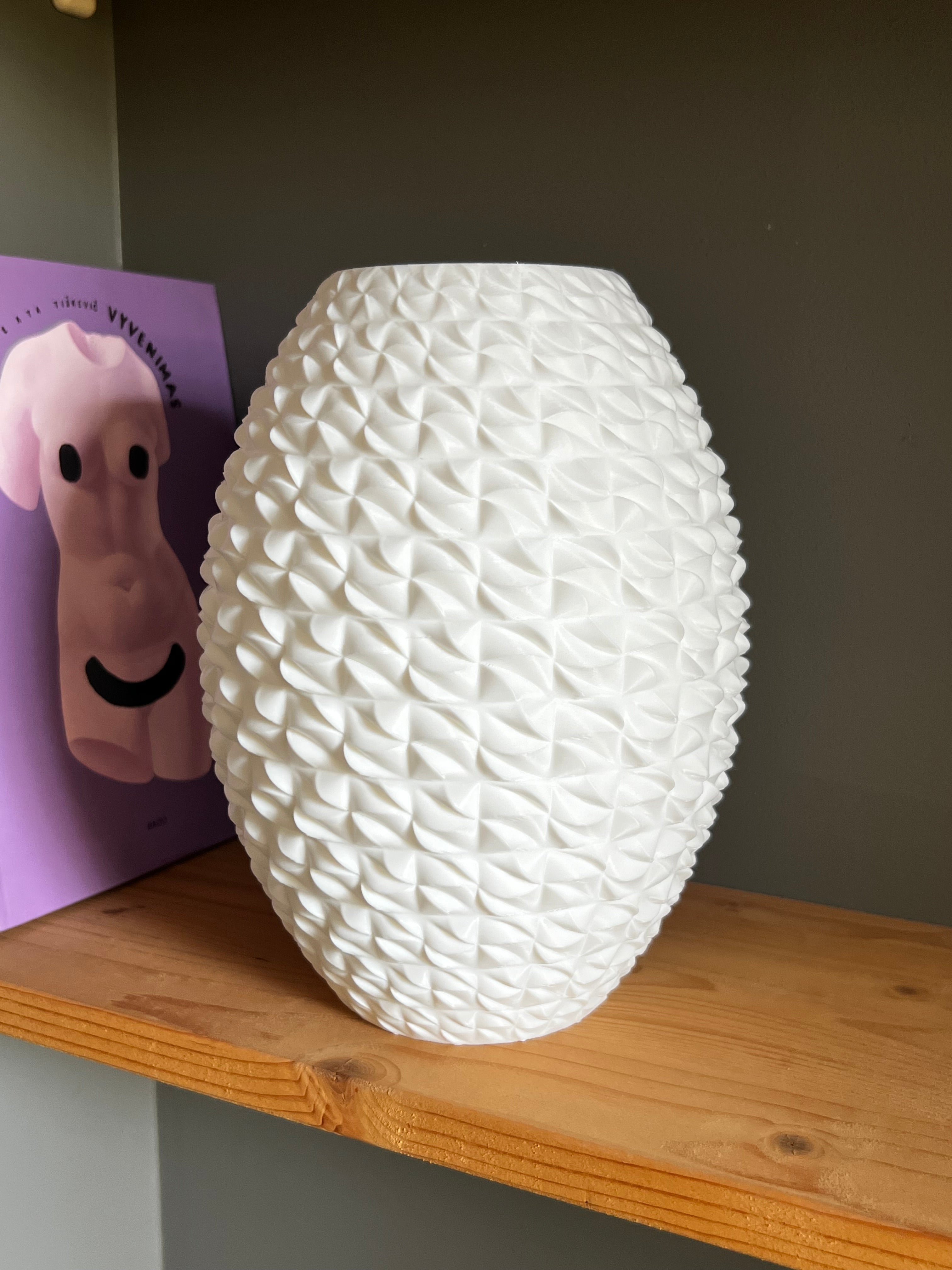 Papuoškite savo namus šiuolaikišku ir elegantišku akcentu su šia unikalia baltą vaza. Jos išskirtinis tekstūruotas dizainas, primenantis geometriškai tobulą raštą, suteikia jūsų interjerui modernumo ir rafinuotumo. Vaza turi apie 21 cm aukštį ir sveria 300 g, todėl ji yra tvirta ir kompaktiška, puikiai tiks tiek kaip gėlių kompozicijų pagrindas, tiek kaip savarankiškas dekoratyvinis elementas.