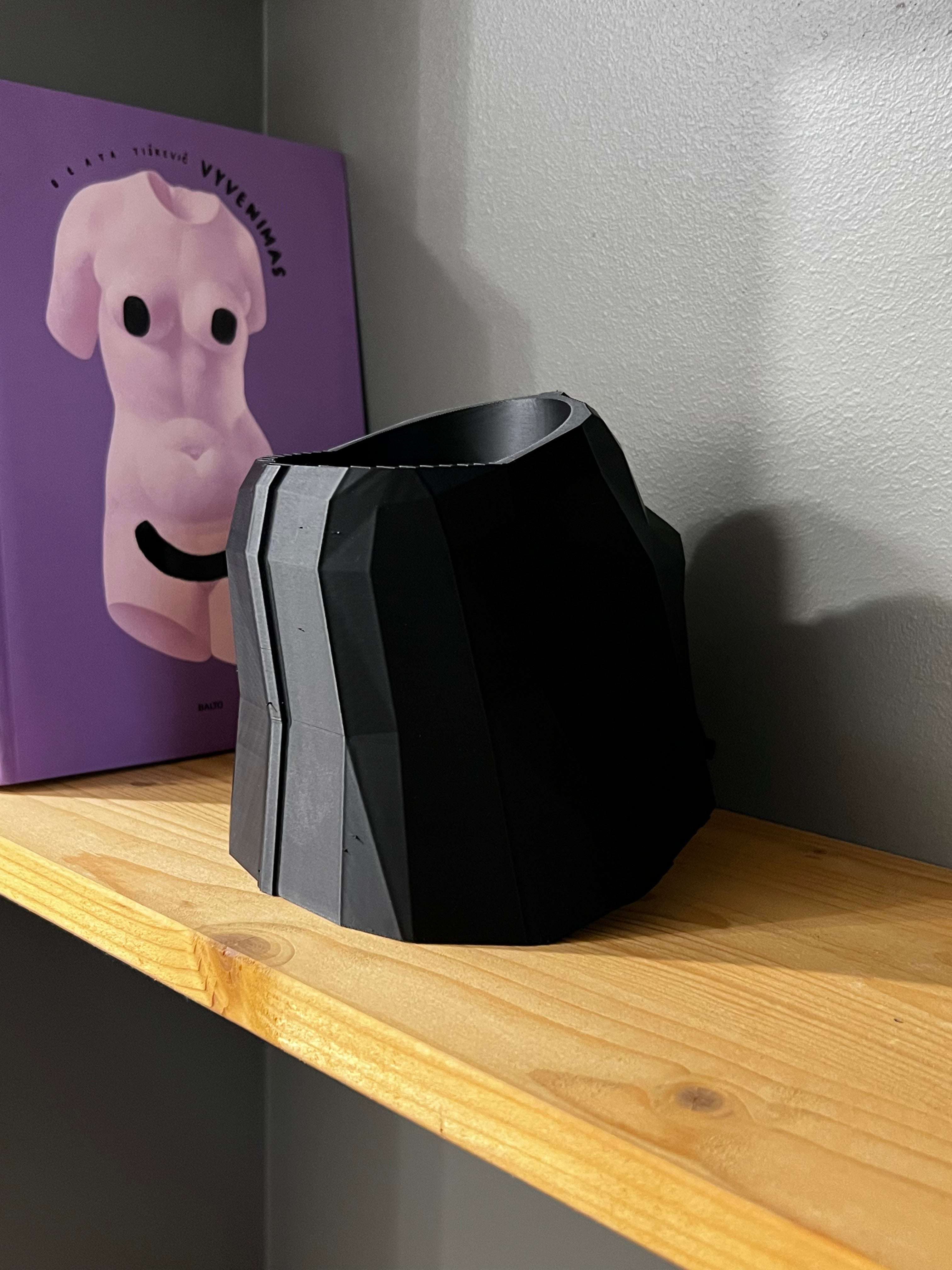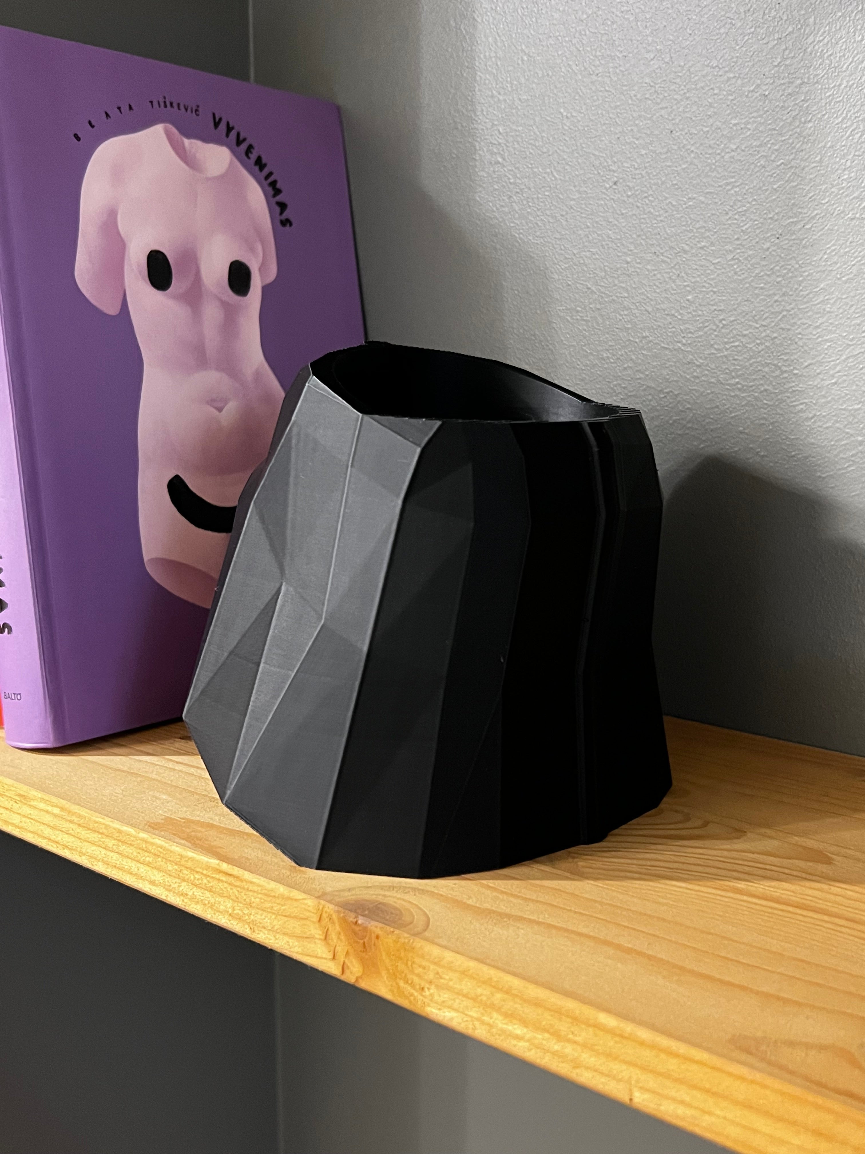 Vaza pagaminta iš aukštos kokybės medžiagų, todėl yra tvirta ir stabiliai stovi. Juoda spalva ir kampuotas dizainas sukuria ryškų ir stilingą akcentą bet kuriame kambaryje. Ji sveria apie 200 g ir yra puiki tiek kaip dekoratyvinis elementas, tiek kaip gėlių kompozicijų pagrindas.