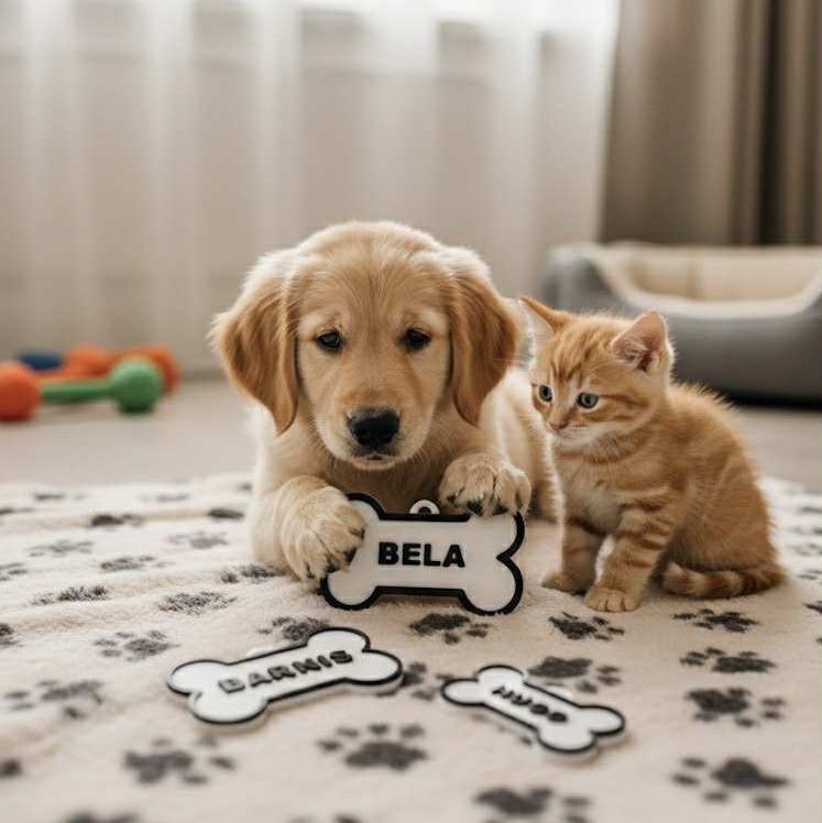 Nepakeičiamas ir stilingas aksesuaras, sukurtas specialiai jūsų augintiniui. Šis elegantiškas personalizuotas žymeklis užtikrina, kad jūsų keturkojis draugas visada bus saugus, net jam pasiklydus.