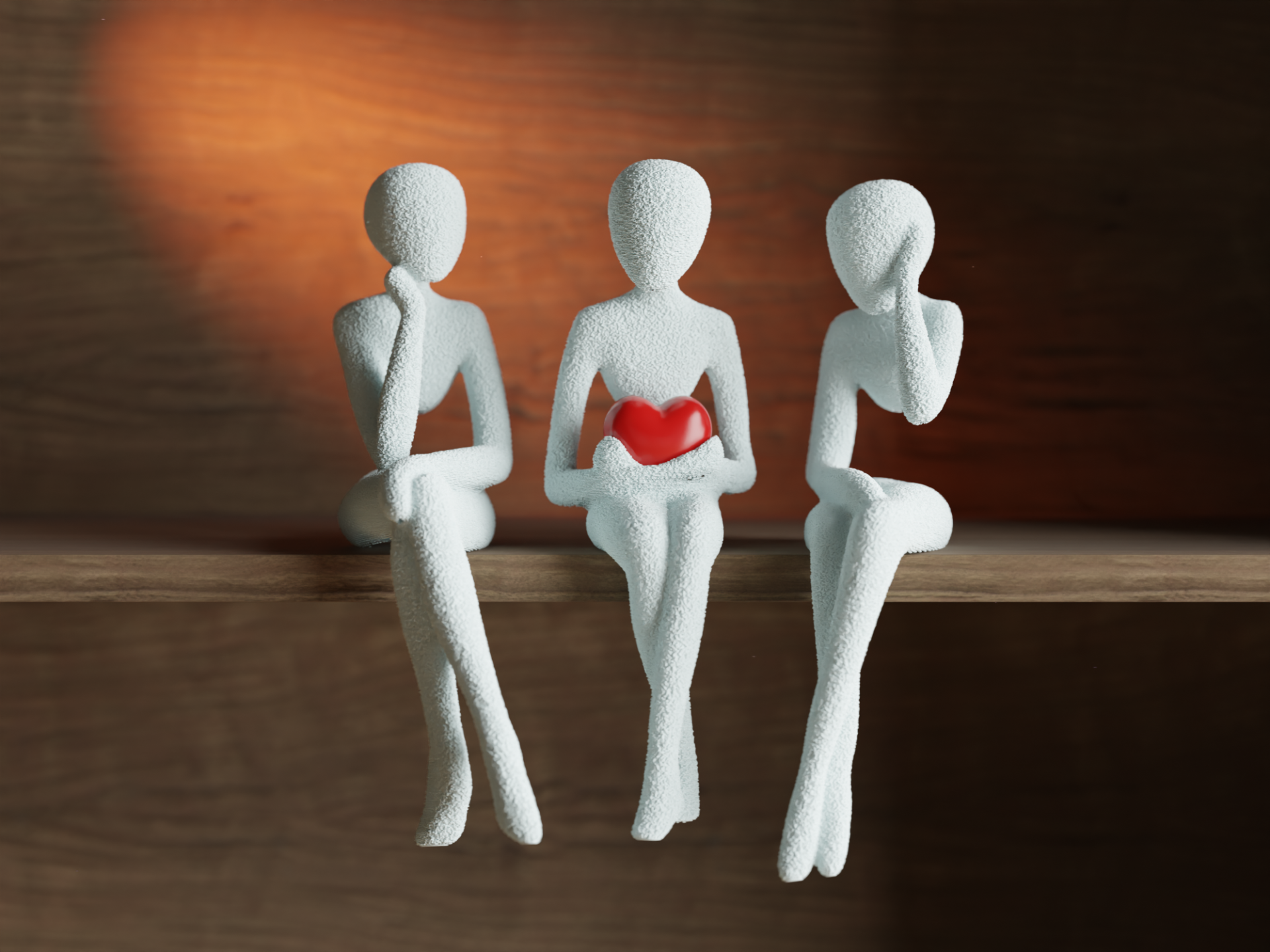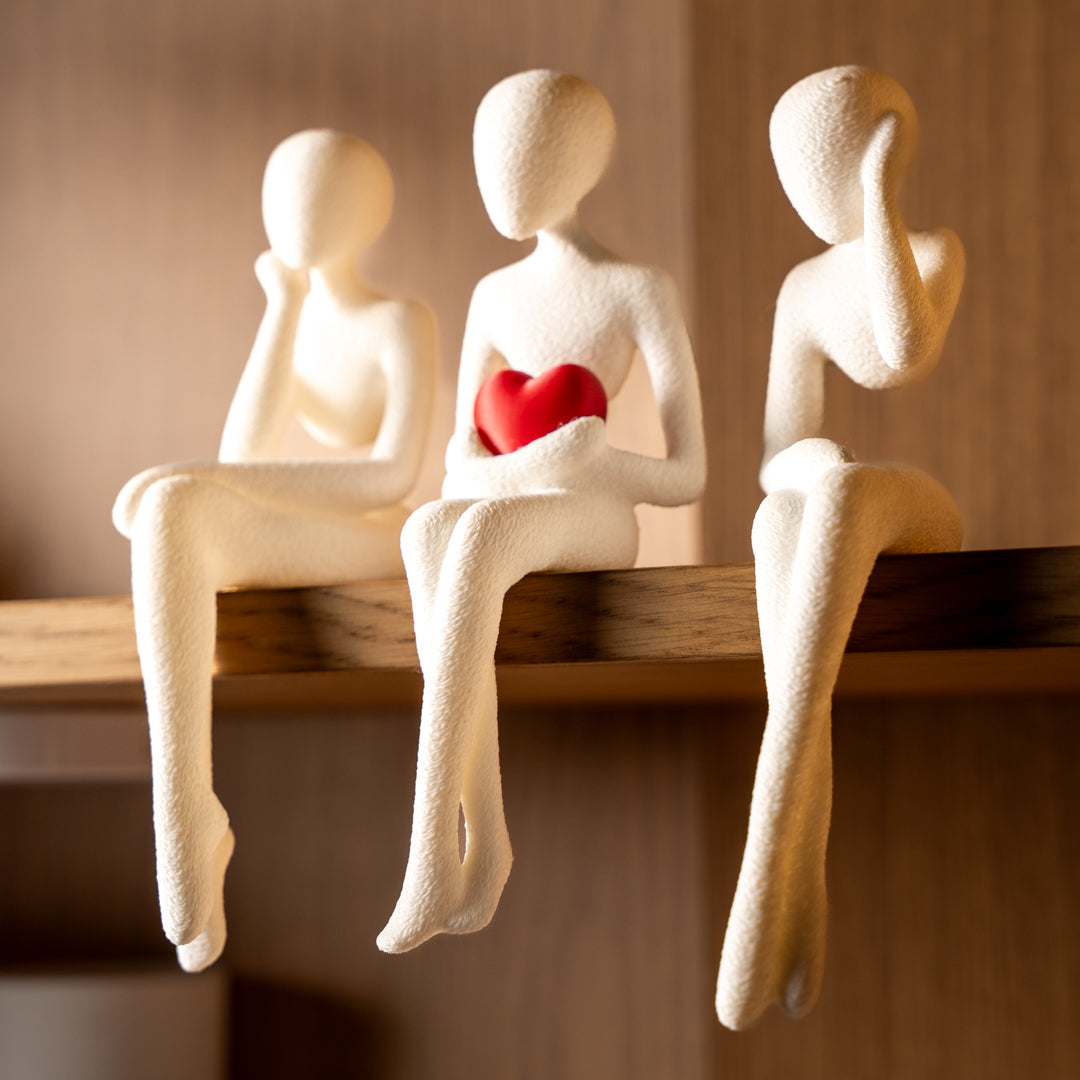 Šis išskirtinis miniatiūrinių skulptūrų rinkinys vaizduoja tarpusavio ryšį, empatiją ir bendrystę. Komplektą sudaro trys minimalistinės figūros, sėdinčios ant briaunos, iš kurių centrinė figūra laiko ryškiai raudoną širdį. Šis meno kūrinys subtiliai kalba apie meilės, palaikymo ir draugystės svarbą.