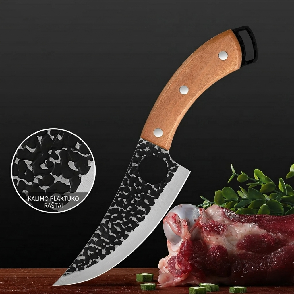 Patirkite tikrąjį gaminimo malonumą su įrankiu, kuris sujungia senovines kalvystės tradicijas ir šiuolaikinį preciziškumą. Šis peilis sukurtas tiems, kurie vertina kokybę, aštrumą ir išskirtinį dizainą tiek namų virtuvėje, tiek ruošiant maistą gamtoje.