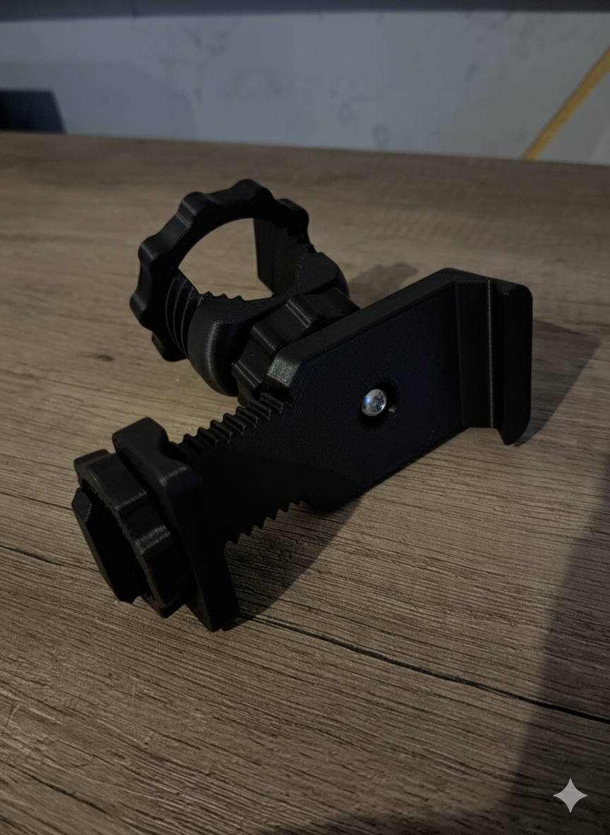 Patikimas Tvirtinimas: Stabilus spaustukas ir tvirta 3D spausdinta konstrukcija užtikrina, kad telefonas išliks saugus net važiuojant nelygiais paviršiais.