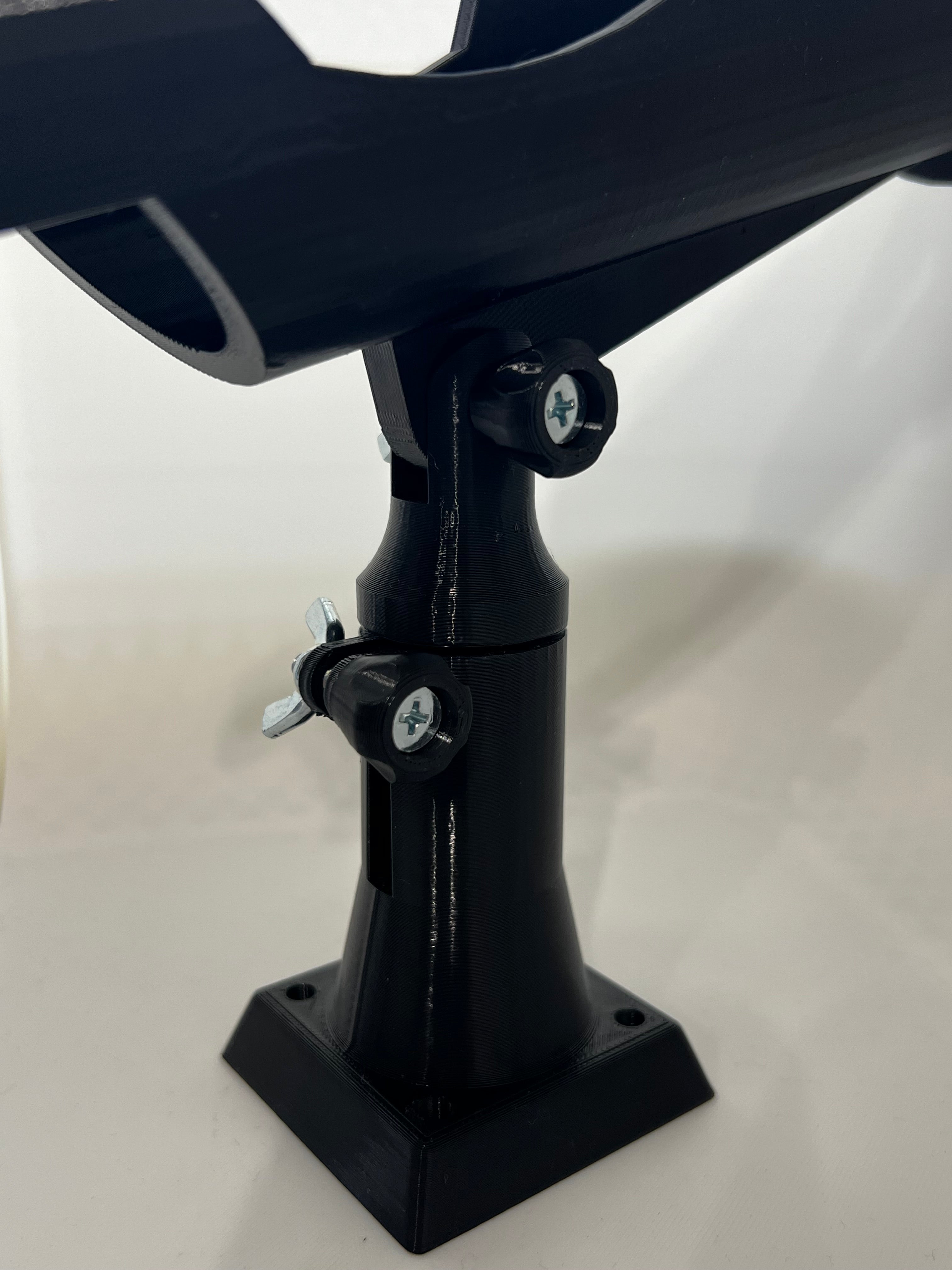 Reguliuojamas kampas: Atlaisvinus apatinį priveržėją, galima pakelti visą laikiklį ir pasirinkti keturias skirtingas kryptis, į kurias galima pasukti laikiklį, priklausomai nuo jūsų žvejybos poreikių.